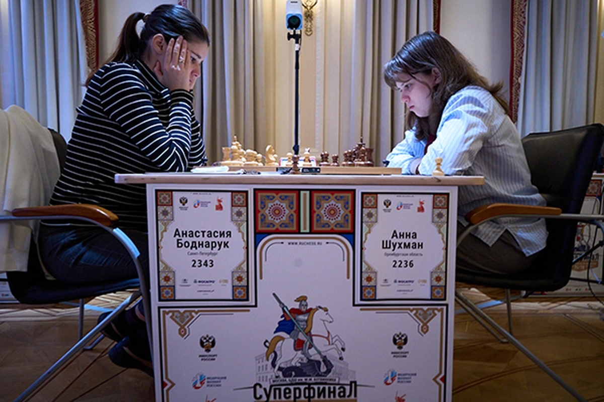 Лидер турнира Анна Шухман играла черными с Анастасией Боднарук. Соперницы разыграли систему Алапина в сицилианской защите, и оказалось, что юная шахматистка пока еще не очень хорошо знакома с тонкостями этой схемы. Она избрала рискованный план с разносторонними рокировками, но при открытой линии «с» атака белых развивалась буквально сама собой. Боднарук умело скоординировала действия всех фигур и пробила оборону черных.